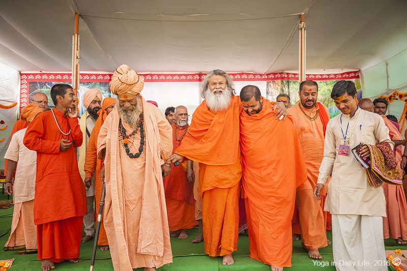 Acharya Mahamandaleshwar Vishokanandji and several Mahamandaleshwars of Mahanirvani Akhara came to visit Vishwaguruji and to see our camp, on 28 April 2016.